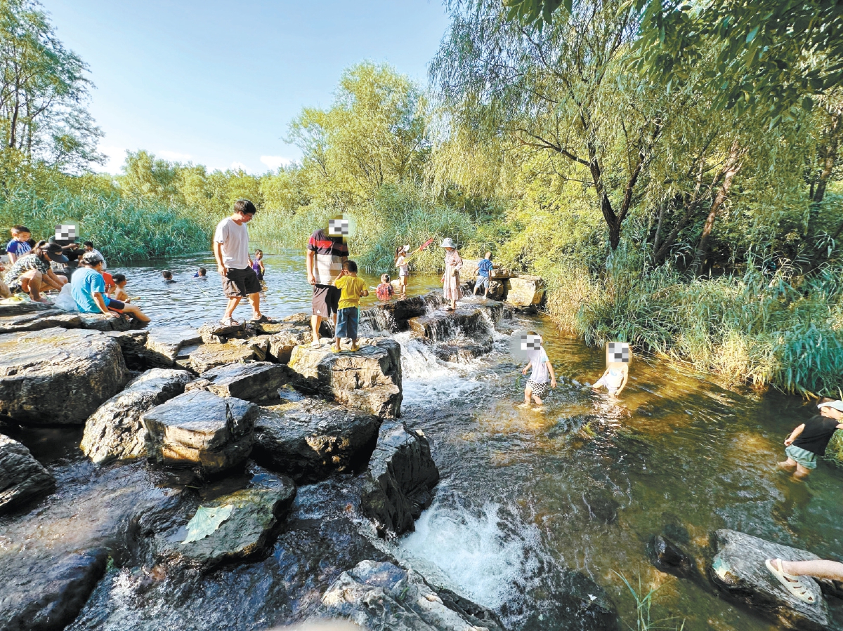 奥森小溪孩子冒险戏水,有家长不明戏水滴用中水